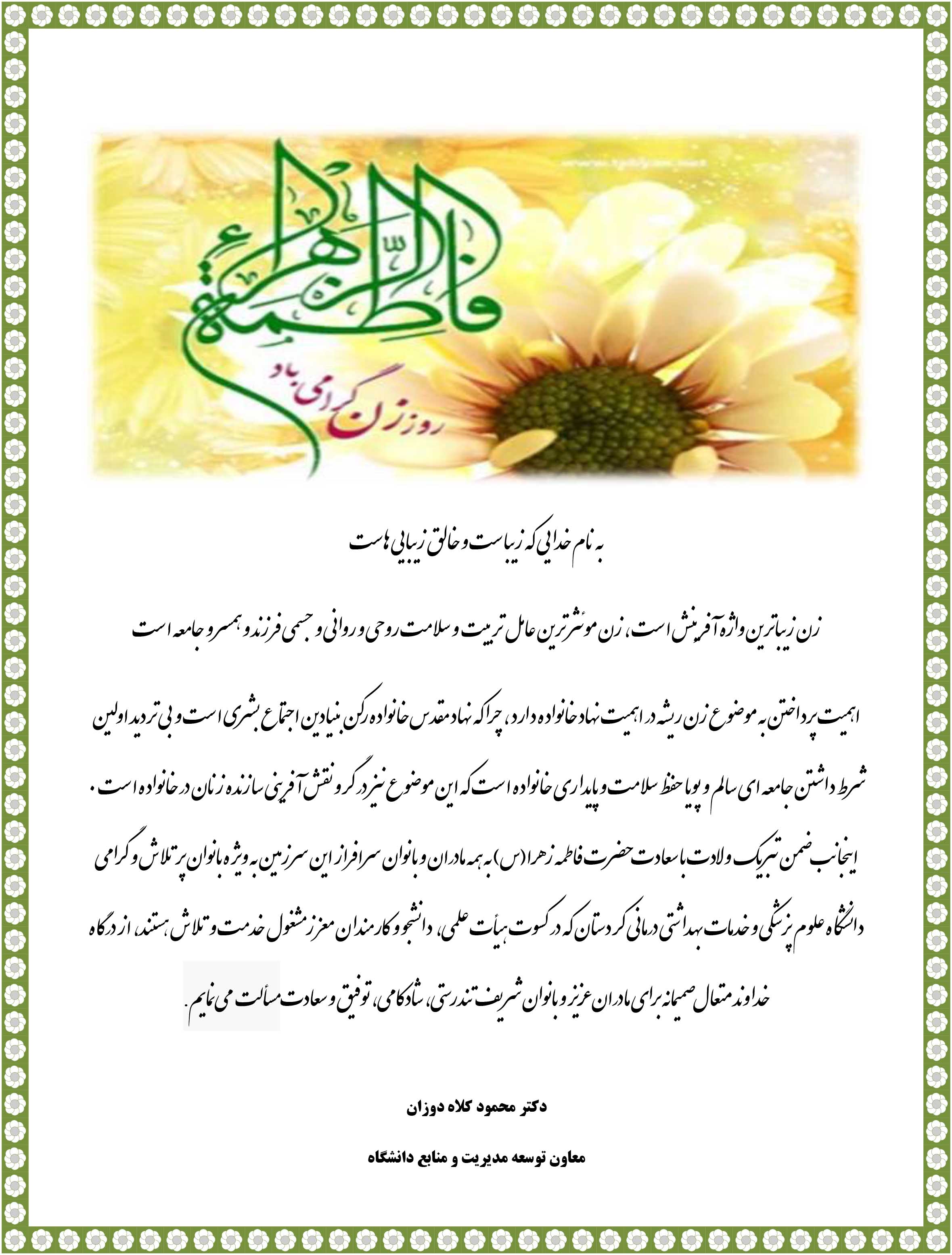 پیام معاون توسعه مدیریت و منابع دانشگاه به مناسبت ولادت حضرت فاطمه (س)